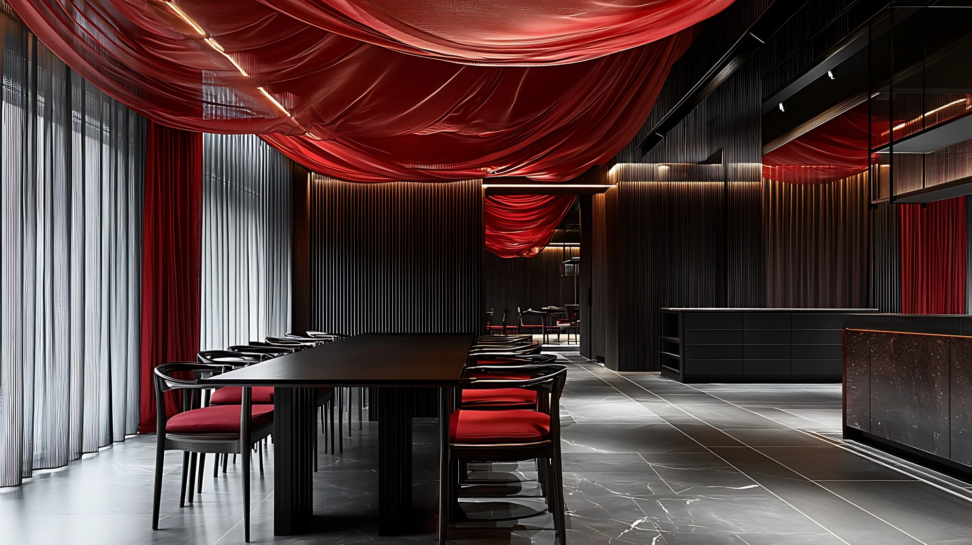 Mit stimmungsvoller Beleuchtung und abgetrennten Sitzbereichen bietet dieser Raum ein exklusives Ambiente. Perfekt für romantische Abende oder ein ruhiges, stilvolles Dinner.