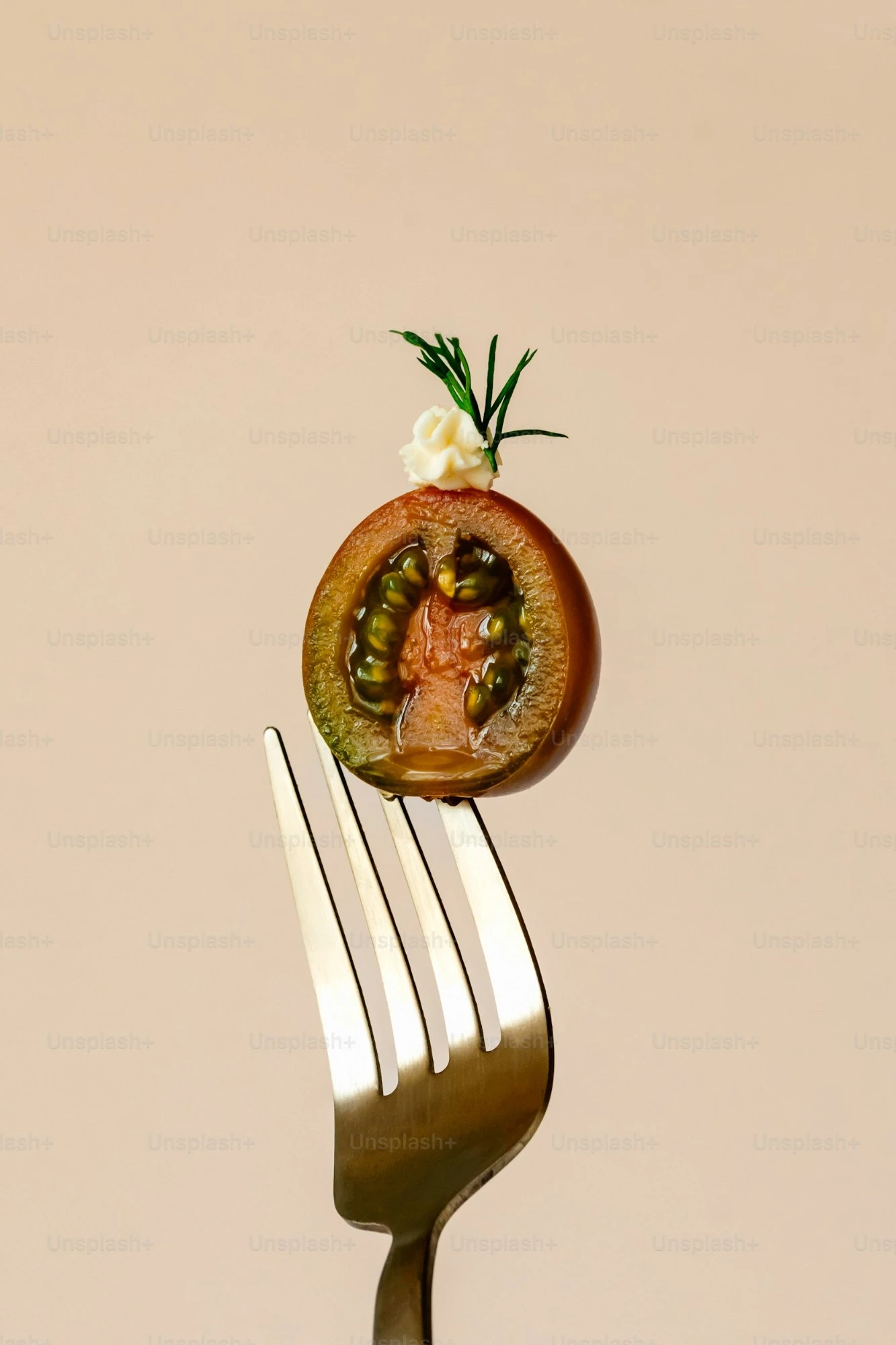 Saftige Cherrytomate, garniert mit Kräuterkäse und einem Hauch Rosmarin.